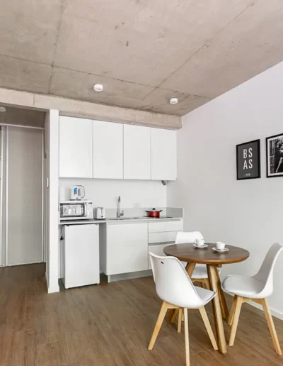 Departamentos de 1, 2 y 3 ambientes con capacidad para 4 personas. Cuenta con cocina completa, microondas, cafetera Nespresso, tostadora, set de cacerolas para cocinar, vajilla para 4 personas.